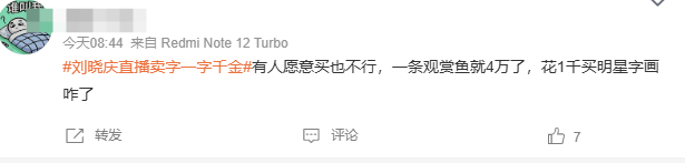 也有人表示:有人愿意买也不行,一条观赏鱼就4万了,花1千买明星字画咋了 。