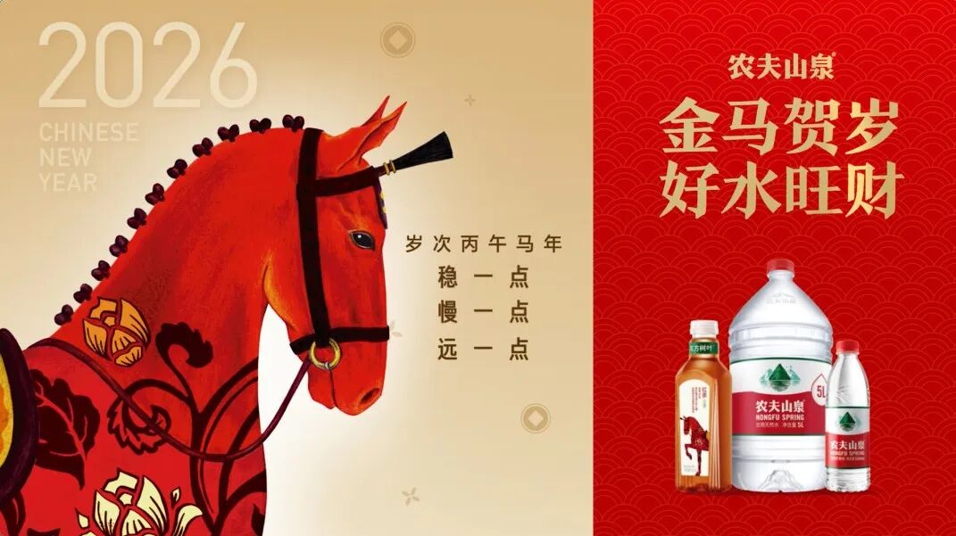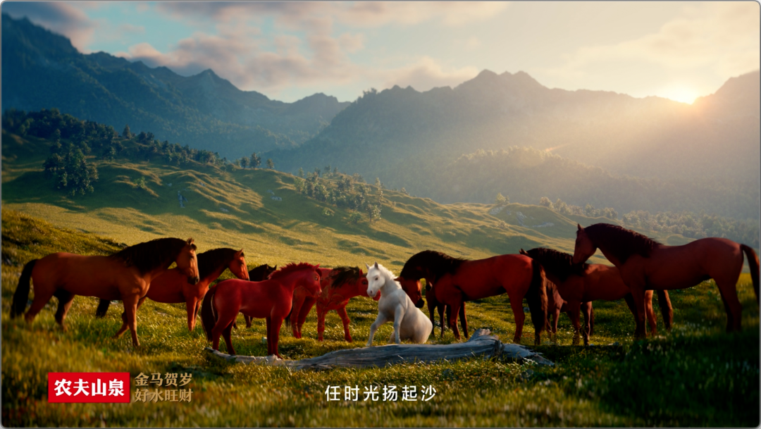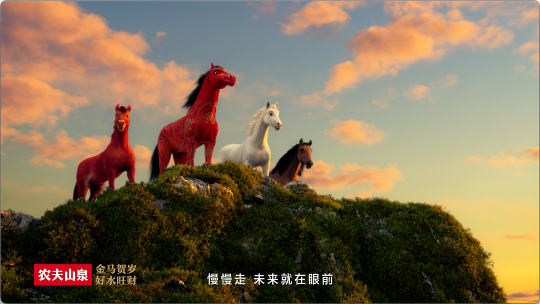 农夫山泉试图做一种不同的表达。回看农夫山泉马年动画电影中的红马,步伐矫健却不失坚定,引路而行却不争先,整体呈现出一种更克制、也更从容的前行姿态。