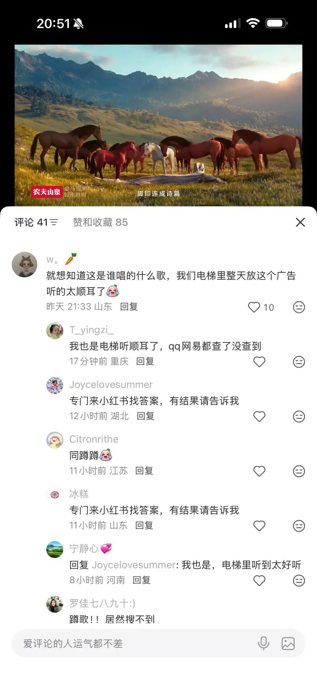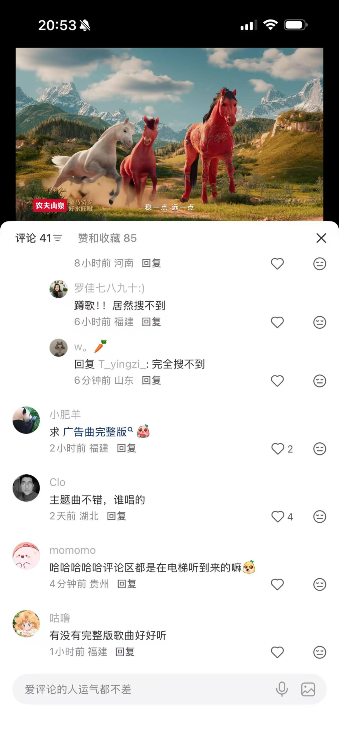 丙午马年,农夫山泉的马年动画电影也如约而至。动画电影刚上线不久,就在社交媒体上引发热议。不少网友都被动画电影中的主题曲打动,觉得既治愈又悦耳,纷纷发帖求 BGM 来源,“蹲歌!居然搜不到。”