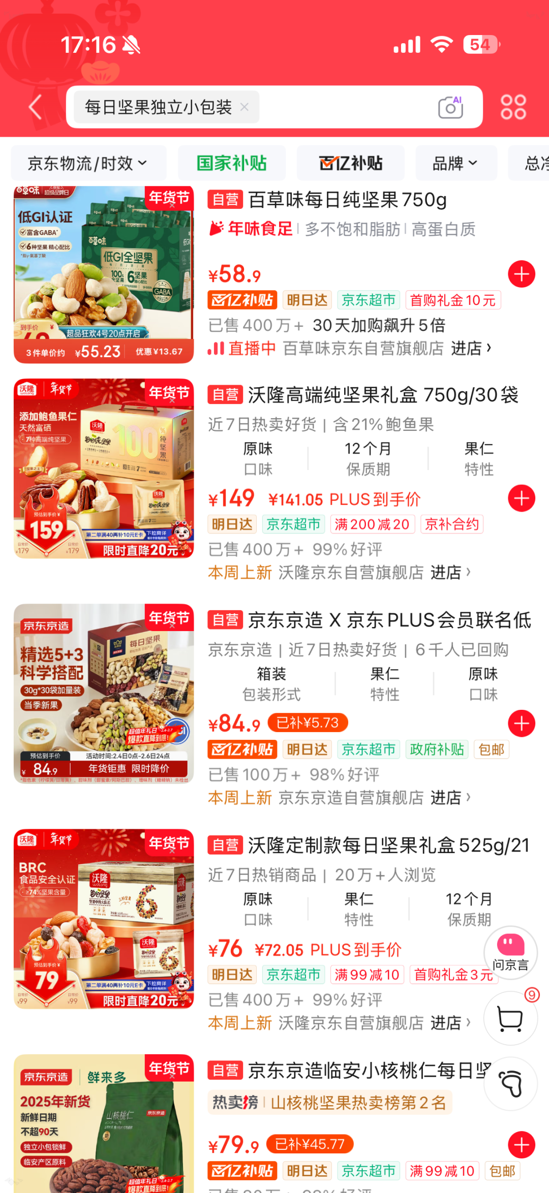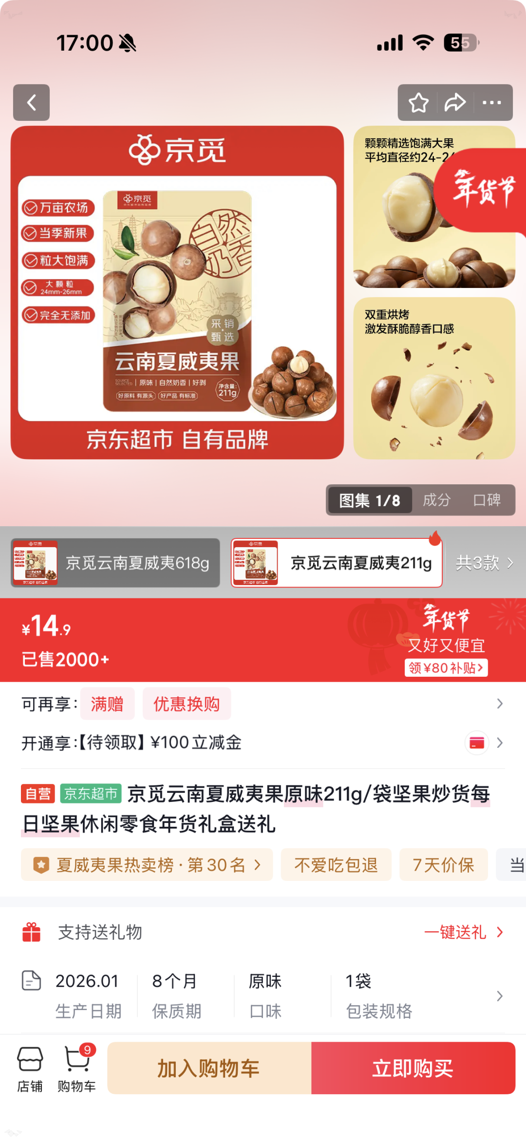 现在,京东超市从源头直采的云南夏威夷果、宿迁碧根果都已正式上架销售,消费者在京东 APP 可直接搜索选购。同时,2026 京东超市年货节也已同步开启,活动一直持续至农历正月初七,上京东搜索“超市许愿”即可直达年货节会场。