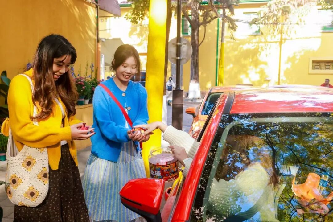 这辆花车,也成了一座移动的“年味地标”。它驶入北京三里屯、上海外滩等现代商业地标,瞬间将这些日常消费空间转化为充满传统喜庆色彩的“临时新年广场”。更具巧思的是,在长城、西安大唐不夜城等历史文化景点的“唐装派糖”,实现了传统地标与当代年味的时空对话。巡游版图遵循“东西双线,辐射全国”逻辑,覆盖北上广及众多网红城市,选址紧密围绕品牌销售重点区域与高流量核心商圈,确保文化体验与市场渗透的有效结合。