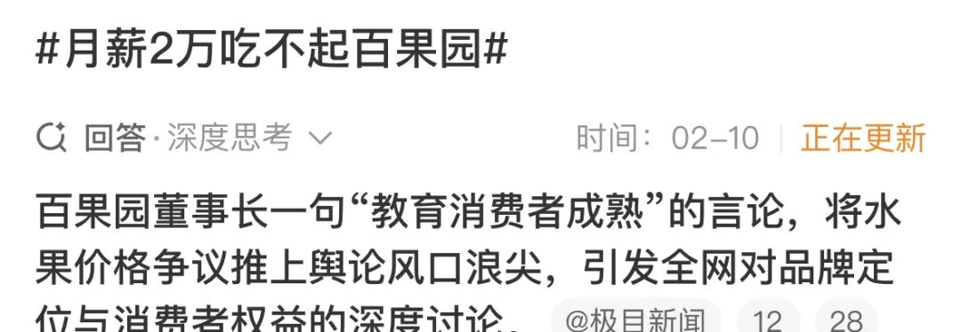 此外,关于百果园水果贵,一直是热搜上的常客,比如月薪两万吃不起百果园。