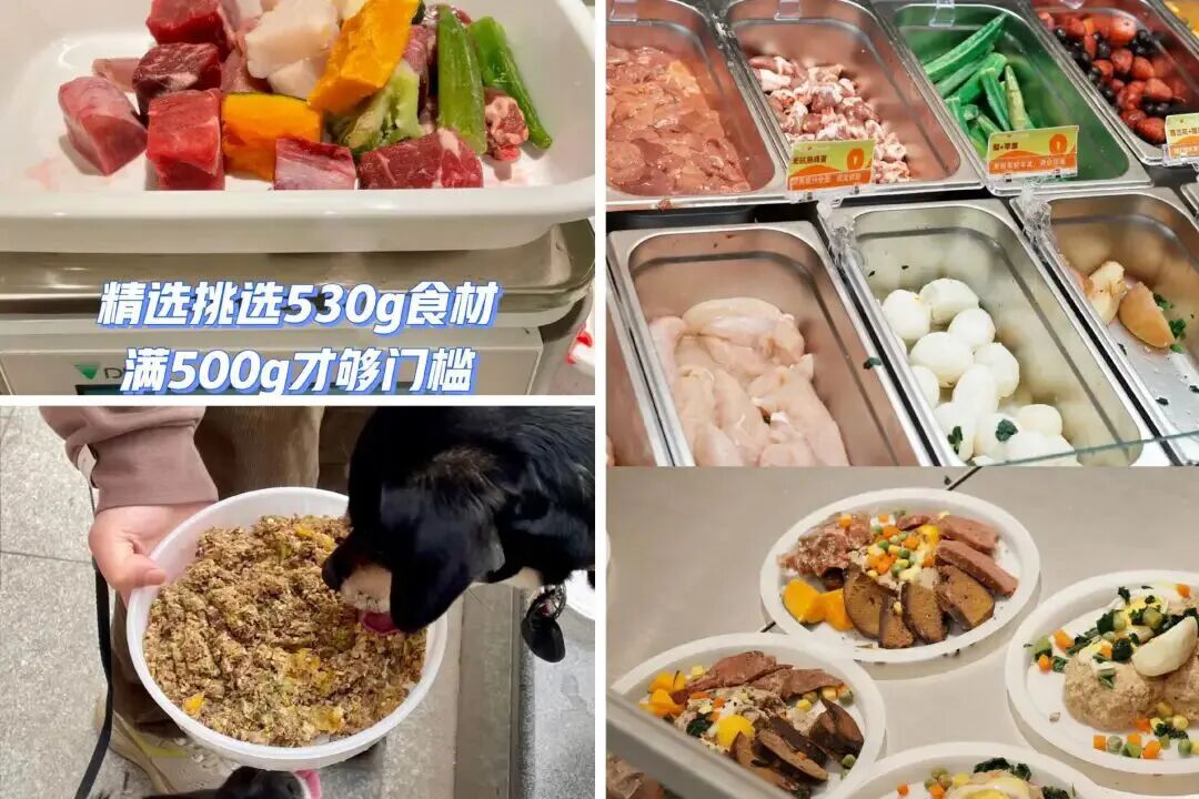 这家宠物麻辣烫店,食材丰富,有各种肉类,比如牛肉、鳕鱼、三文鱼、鸡肉都是非常新鲜的,而且门店强调,全用真肉无合成肉。