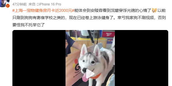 大概是近日有网友发帖称,发现一家宠物健身房,月卡需要2000元,看到这一幕,打工人直接原地麻了,有人表示,自己到现在都没办过健身卡,没想到狗狗都用上了。
