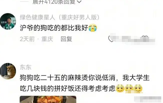 有网友表示,我们叫外卖吃的冷冻肉、假肉,沪爷的狗,吃的是真肉……“沪爷的狗比我吃得还好!”