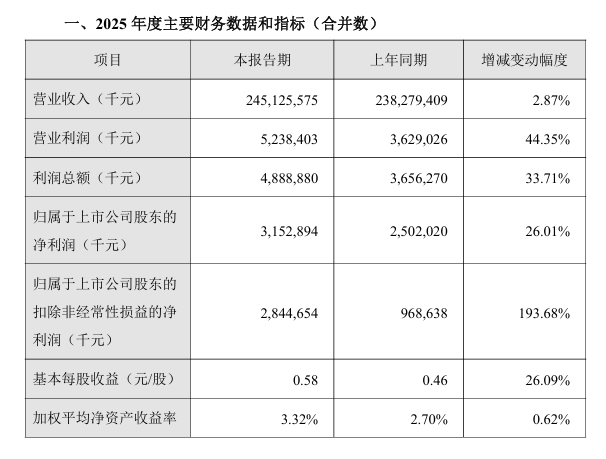 金龙鱼2025年度业绩快报显示,报告期内,金龙鱼实现营收与净利的双增长,营业收入达到2451.26亿元,同比增长2.87%;利润总额为48.89亿元,同比增长33.71%;归母净利润31.53亿元,同比增长26.01%。