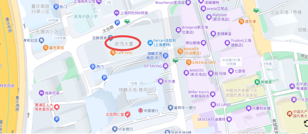 公开资料显示,新茂大厦位于淮海中路黄金地段,黄浦区太仓路233号,与新天地比邻,步行3分钟即可到达地铁1号线与14号线交汇的黄陂南路站,开发商为新加坡凯德集团前身嘉德置地。