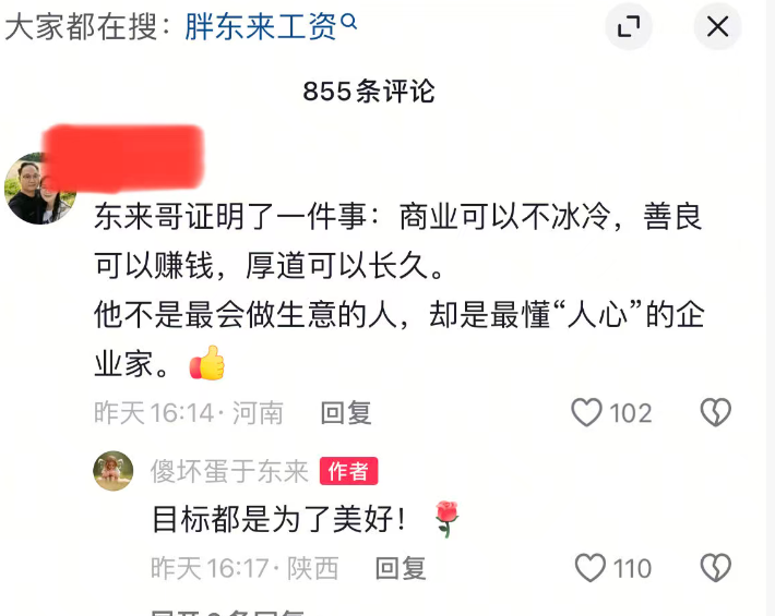 也有人表示:东来哥证明了一件事:商业可以不冰冷,善良可以赚钱,厚道可以长久。他不是最会做生意的人,却是最懂“人心”的企业家。于东来则回应:目标是为了美好。