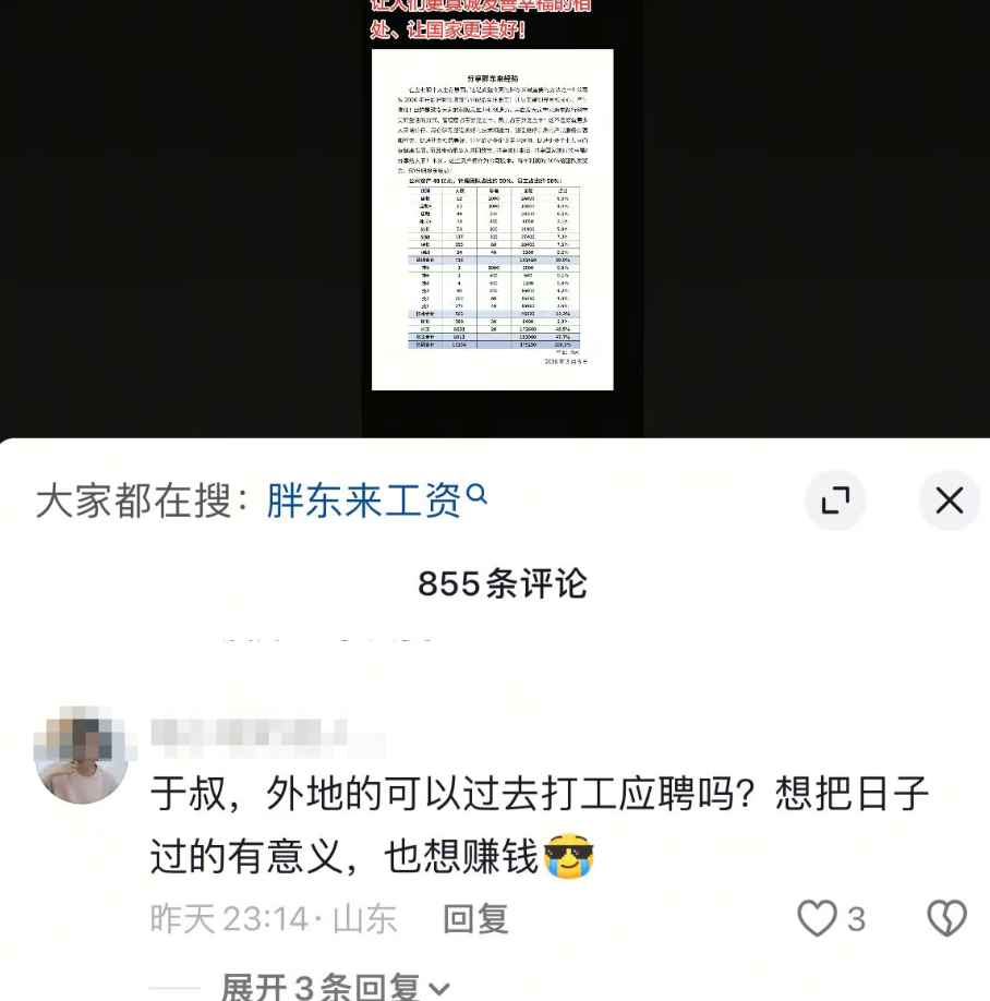 “全国都在喊口号,这下好了,东来哥直接公布了答案,去学吧”“于叔,外地的可以过去打工应聘吗?想把日子过的有意义,也想赚钱”