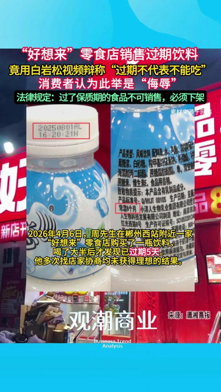 “好想来”零食店销售过期饮料!竟用白岩松视频辩称“过期不代表不能吃”,消费者认为此举是“侮辱”