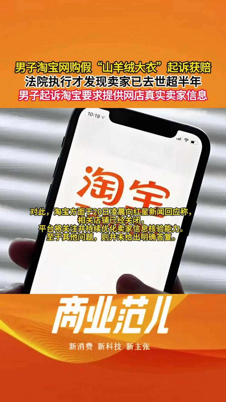 男子淘宝网购假山羊绒大衣起诉,法院执行才发现卖家已去世超半年