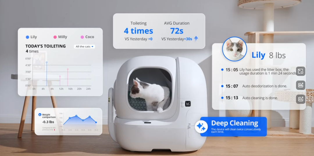 简单算一笔账,如果要在全球180多个国家和地区,做到用AI摄像头识别数百万乃至千万只猫咪(面部识别、尾巴动作识别),以及通过算法分析排泄物形状和颜色预警健康问题,这意味着极高的运维成本。