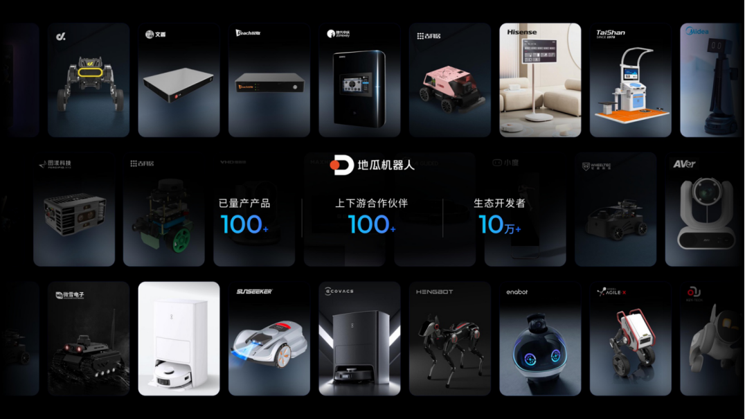 余凯表示,地平线已成为中国最大的消费类机器人计算平台。其子公司“地瓜机器人”生态已连接超100家上下游合作伙伴、10万余名开发者,上市产品超过100款。产品形态覆盖广泛:
