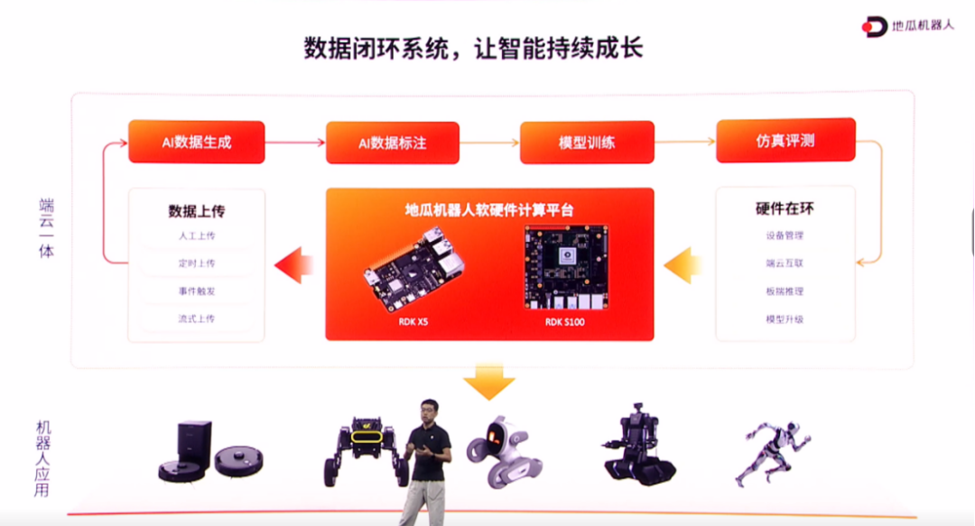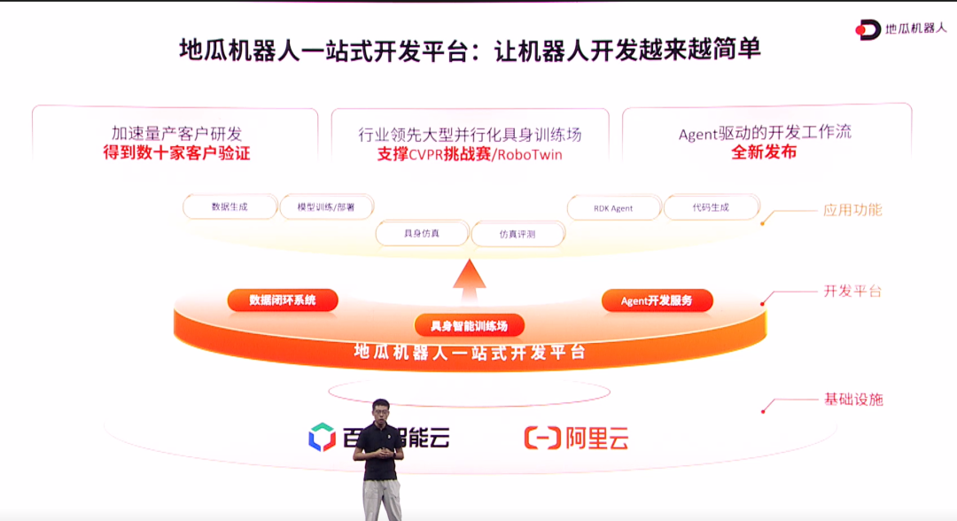 如果说计算基座是“土壤”,那么开发平台则是生态中的“空气与河流”。地瓜今年正式发布的端云一体化开发平台,包含三大核心模块:数据闭环系统、具身智能训练场和Agent开发服务,共同构成机器人快速迭代的完整支持体系。