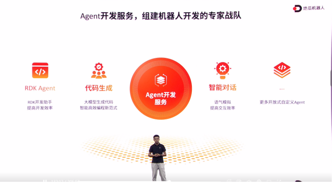 最引人注目的是Agent开发服务的智能化水平。胡春旭分享了现场演示案例:“只需要输入‘请帮我在RDK上开发一个图像识别算法’,两分钟后,代码不仅写完,还能直接运行看到效果。”这种基于大模型的开发方式,预示着机器人开发模式的根本性变革。