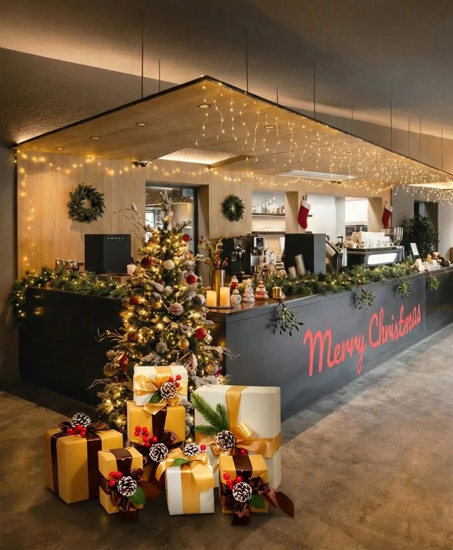 把这个咖啡馆装饰成圣诞氛围。