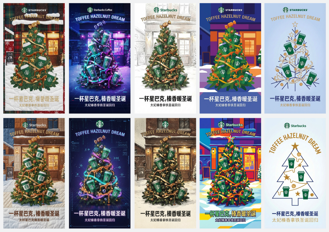 只改变了文字内容,字体和样式都保持不变。每到冬天,瑞幸的太妃榛香拿铁总会限时回归。来给它做一个圣诞氛围的海报。