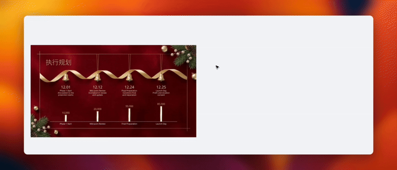 一气呵成,毫无违和感。再上上难度,生成一套圣诞活动策划方案PPT。