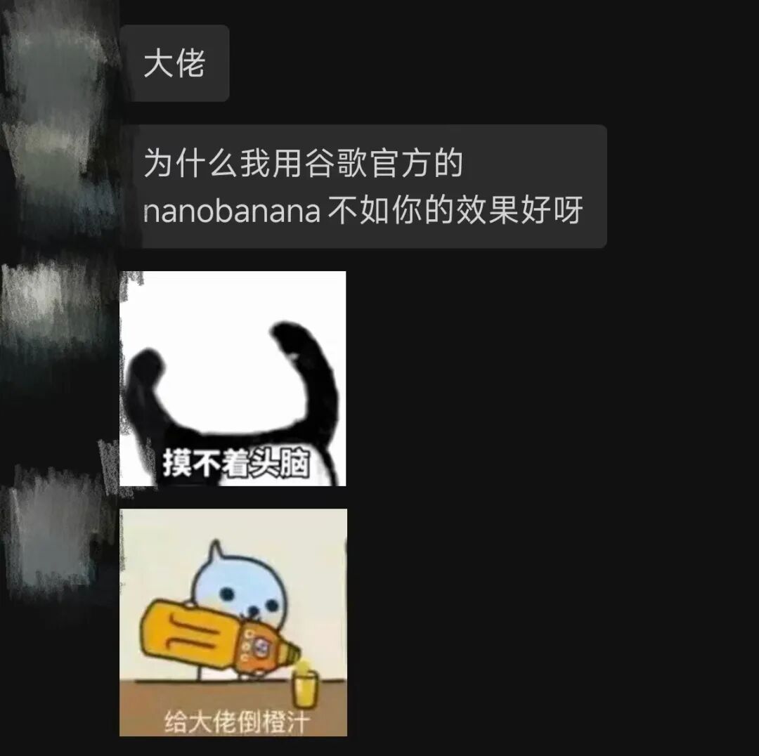 之前还有小伙伴私信我,说为啥感觉用官方Nano Banana的效果不如我文章中的效果。