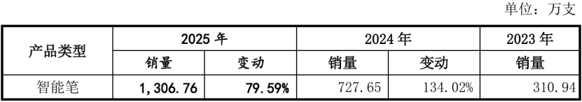 招股书数据显示,2025年公司智能笔销量为1306.76万支。这意味着新产能落地后,其理论总产能将超过现有销量的两倍。这不仅是为应对现有订单增长,更是为其AI新品上市、品类扩张提前储备的“弹药库”。