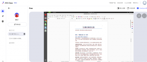 龙虾与其他智能体最大的区别在于,具备持久记忆和主动执行能力,从会聊天进化为能办事。我深度体验了JVS Claw在数据抓取、文档处理、流程调度等办公场景的应用,最直观的感受是超出预期,干起活来既快又准,几乎没有AI幻觉导致的数据错误、逻辑偏差,堪称打工人效率神器。
