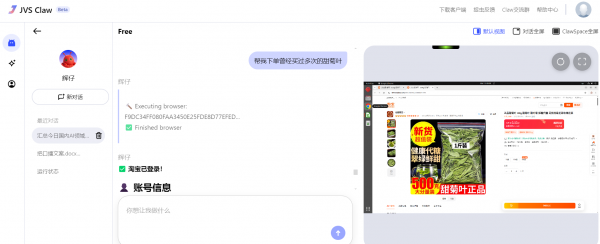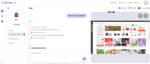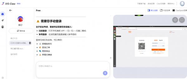 整个流程操作下来,我不禁感慨:多亏了ClawSpace筑牢安全底线,使“辉仔”操作全程可控,每一步都无比安心。尤其是遇到登录账号、下单、付款等操作卡点,用户可以随时介入手动修正,一切尽在自己掌握之中,完全不用担心JVS Claw乱来。