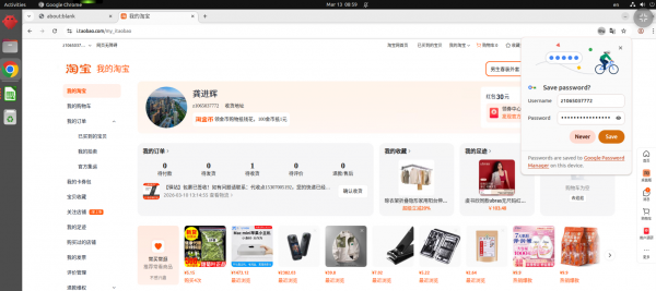 比如,我让“辉仔”打开淘宝并登录账号,可以在ClawSpace实时监控它的操作,果然打开了淘宝,但并未自动登录账号。等我登录账号后,ClawSpace又提示是否要保存密码,之后我吩咐“辉仔”下单曾经买过多次的甜菊叶,它只是弹出甜菊叶商品页面,并未自主下单,后续下单、付款均由我自己操作。