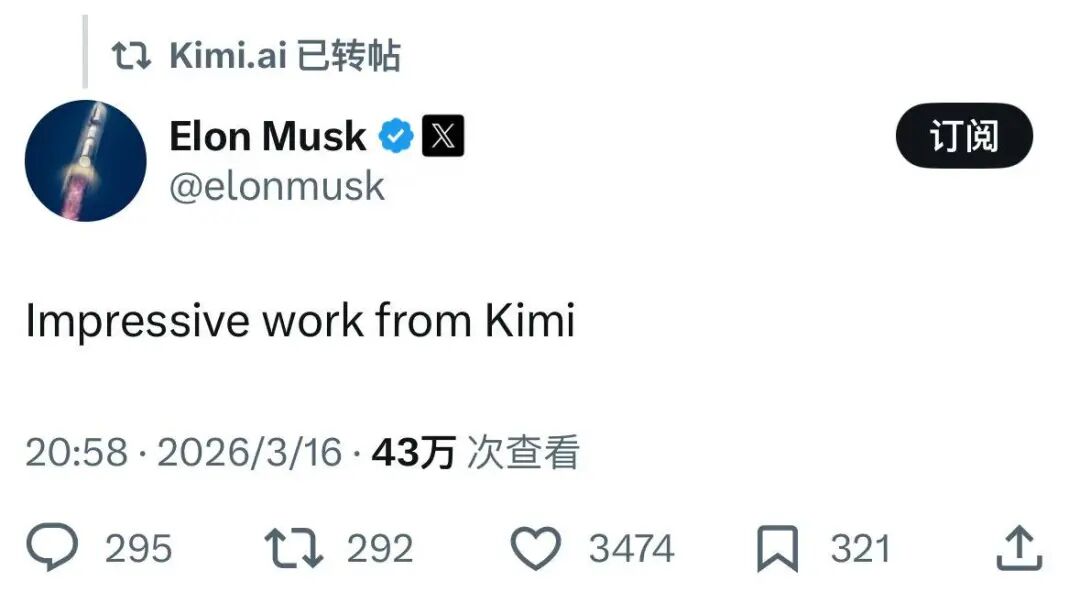 本周,一篇题为《Attention Residuals》的论文,将Kimi推至全球人工智能领域的聚光灯下。论文作者之一,甚至是一名年仅十七岁的高中生。xAI首席执行官埃隆·马斯克与Google高级人工智能产品经理Shubham Saboo,亦公开发文祝贺。后者更宣称,Kimi正在触及Transformer架构中“长达十年无人触碰的部分”。