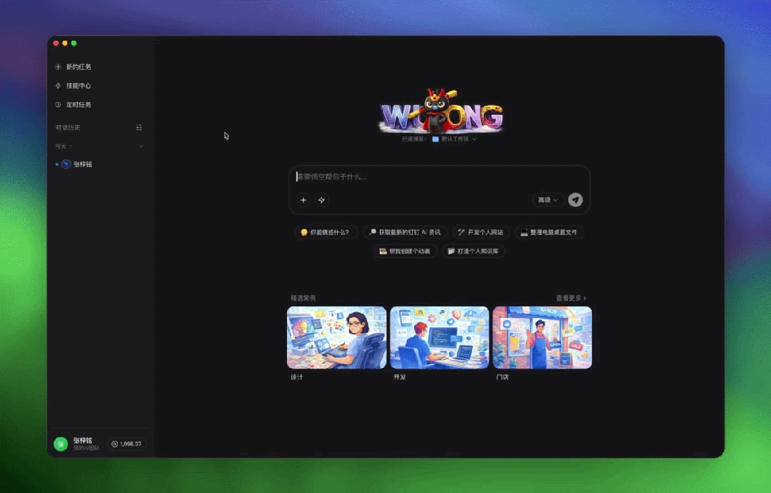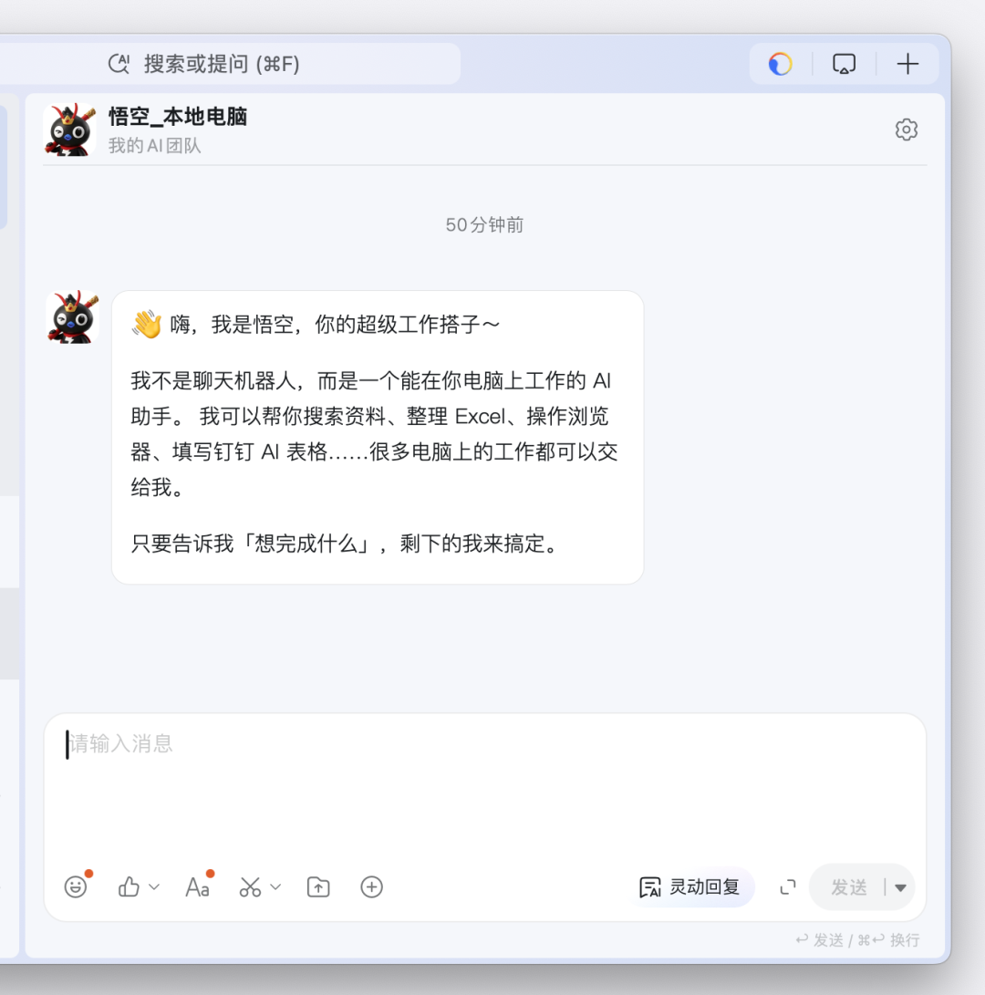 登录后,悟空会在钉钉上跟你打招呼,你可以在钉钉直接指派任务。