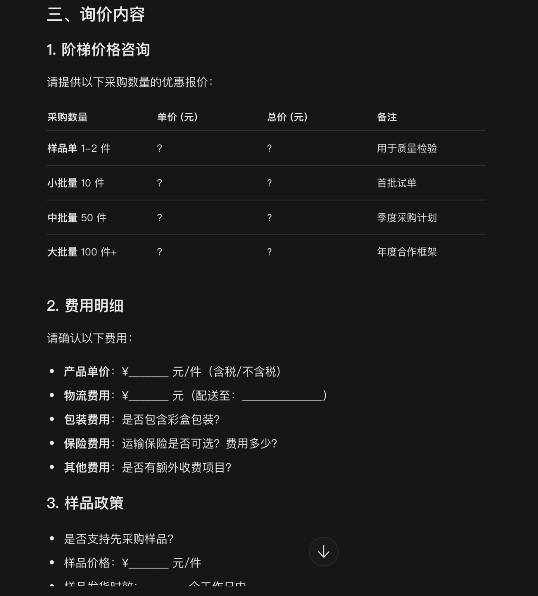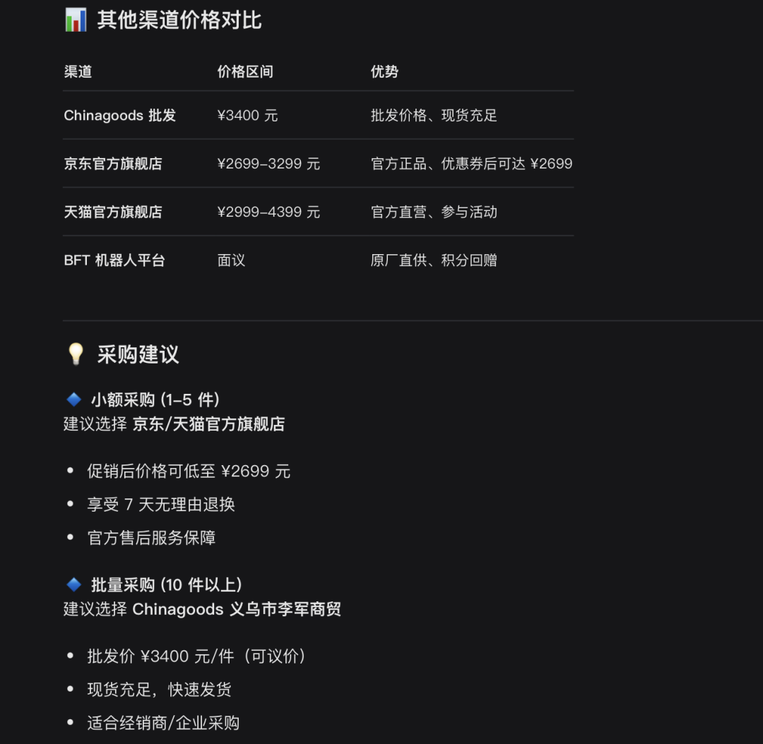 还贴心地给出了其他渠道价格对比,以及采购建议。都是实打实的真实数据,可以直接拿来用。