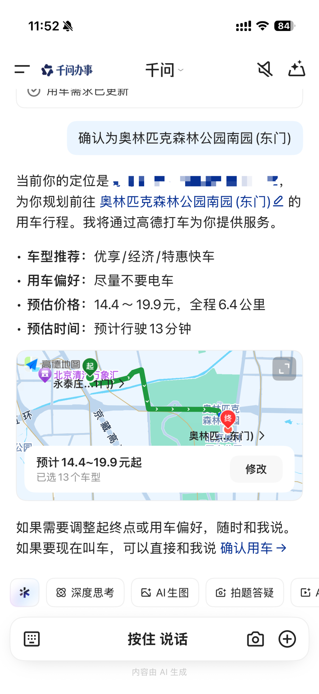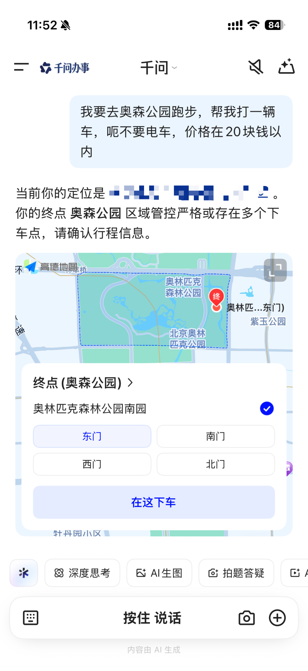 去哪儿上车也是难点,网约车时代,乘客和司机们哪怕看着地图界面都还找不到彼此,用 AI 来一句话打车,难度就更大了。