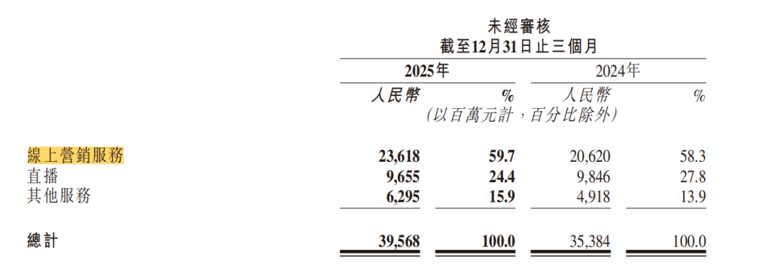 最直观的体现,在线上营销业务。2025年第四季度,快手线上营销服务收入达到236亿元,同比增长14.5%。财报显示,生成式推荐大模型与智能出价模型带动国内线上营销收入提升约5%,AIGC营销素材单季消耗金额约40亿元。UAX全自动投放产品在非电商营销服务的消耗渗透率接近80%,活跃客户渗透率超过90%。