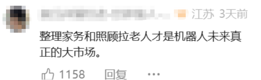 这些评论已经勾勒出一部分真实需求,公众开始把家庭机器人当作一个未来可能购买、可能使用的产品来讨论,主动询问价格、能力边界和落地时间,也把它和养老、独居安全、居家照护这些长期问题联系到了一起。