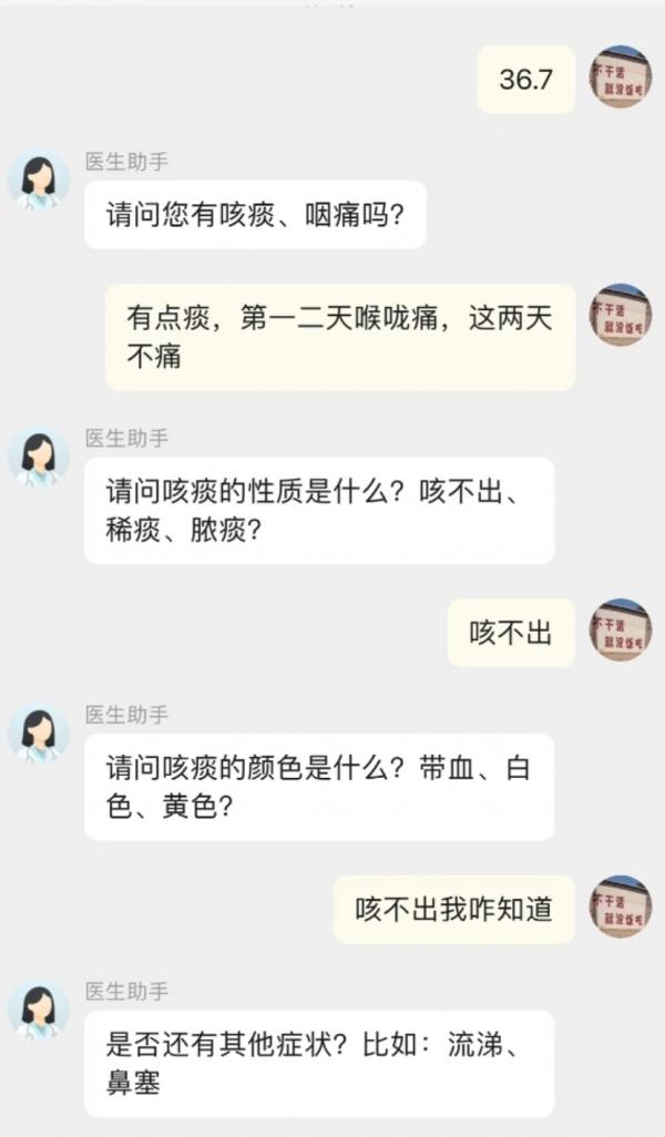 比如,网友小王喉咙不舒服,想让AI给些治疗建议,对话过程中AI询问小王,咳痰的性质是什么?