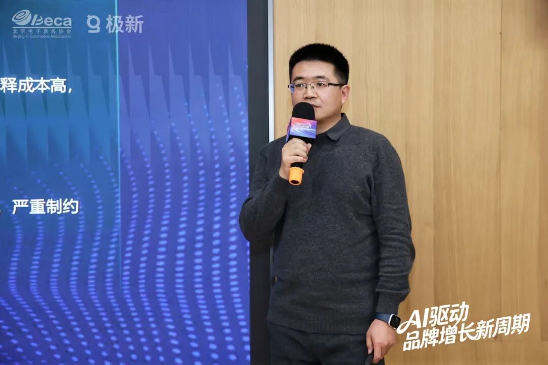 随后,极新创始人姜稳发布并深度解读了《AI赋能品牌增长实践报告》。报告指出,AI技术已跨越拐点,正从辅助性的“外挂工具”演变为驱动企业生存与增长的“心脏引擎”,标志着品牌正式进入“AI原生”时代。
