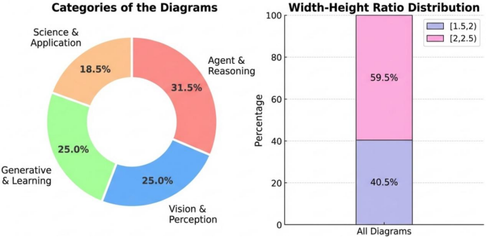 研究团队从NeurIPS 2025的5275篇论文中进行系统采样,经过多轮的过滤和人工校验后,最终得到了292个高质量的测试用例,覆盖了智能体推理、视觉感知、生成式学习、科学应用这四个类别。