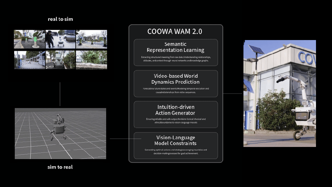 酷哇科技提出了 COOWA WAM 2.0 世界模型解决这两大问题,让机器人在行动前先「理解世界、预演未来、再做决策」。