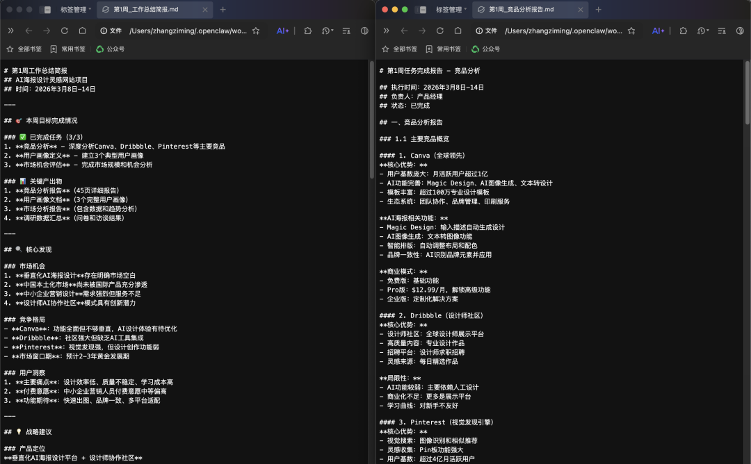 不需要在浏览器、Excel、本地文档之间反复横跳,OpenClaw像一个隐形的助理,默默地在后台把调研、清洗、入库全部做完。不再是给你一堆不知所云的文字块,而是清清楚楚的字段、状态更新和文件路径。