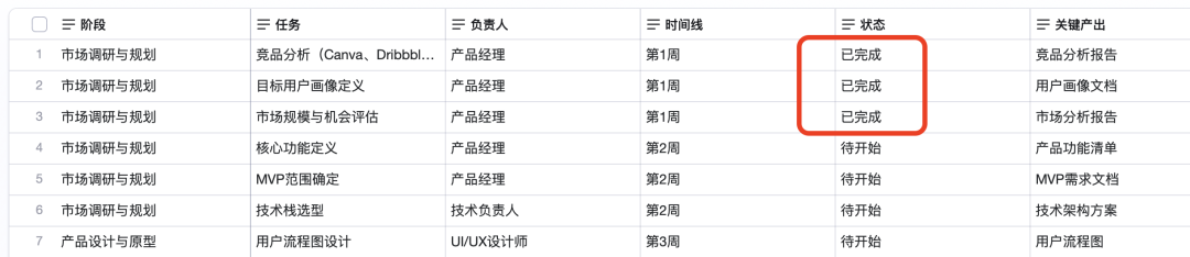 这种结构化过程,实际上是把AI的发散思维,通过表格的栅格逻辑,收敛成了可决策的商业情报。