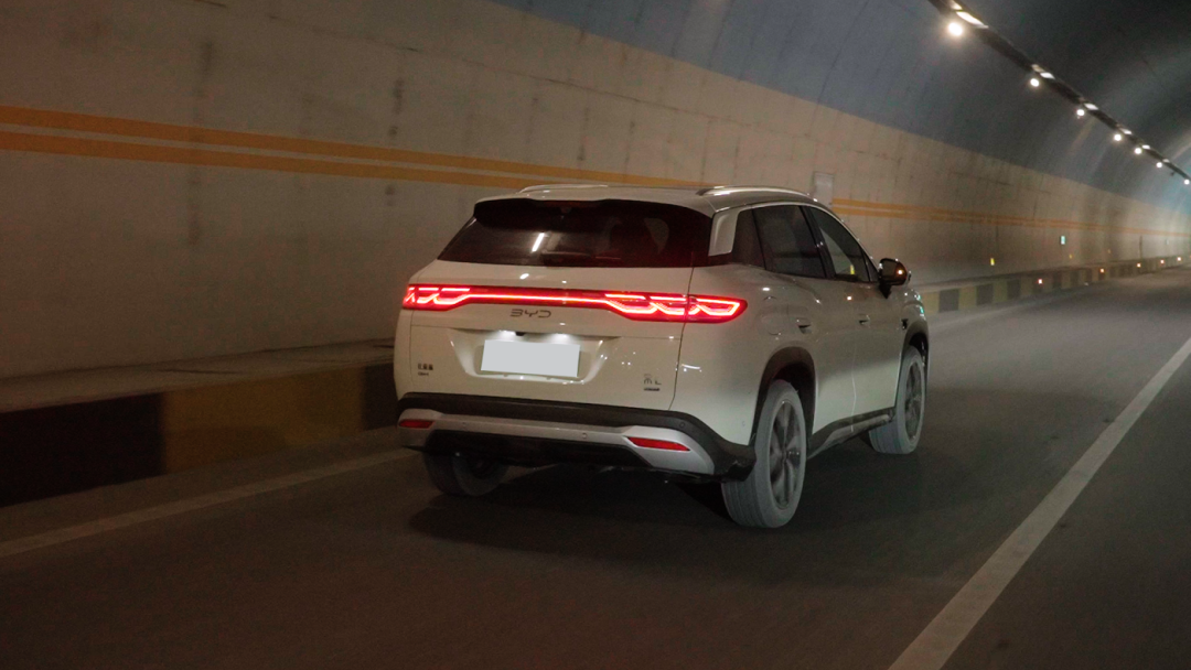 但能明显感觉到,宋L DM-i的车身姿态非常稳健。这要归功于全系标配的云辇-C智能阻尼车身控制系统,通过毫秒级连续可变阻尼调节,过弯时支撑有力,经过颠簸时又能很好地过滤掉震动,底盘给人一种高级的厚重感,乘坐体验非常舒适。而且,在这种复杂路况下行车,安全永远是第一位的。宋L DM-i同级首搭TBC高速爆胎稳行系统,即使是140km时速也能在50毫秒内识别爆胎,并且快速实现“横、纵、垂”三维协同控车,完全就是我的“隐形安全卫士”,这份底层安全保障,让全家出行都更安心。