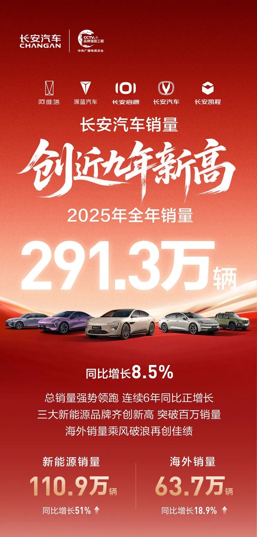 2025年的中国车市存量竞争白热化与新能源转型深化并行。作为中国前五大汽车集团之一的长安汽车,2025全年销量突破291.3万辆,同比增长8.5%,创下近九年新高,更实现连续6年同比正增长,在激烈竞争中筑牢头部地位,交出了一份“规模与质量双升、速度与深度兼具”的亮眼答卷。