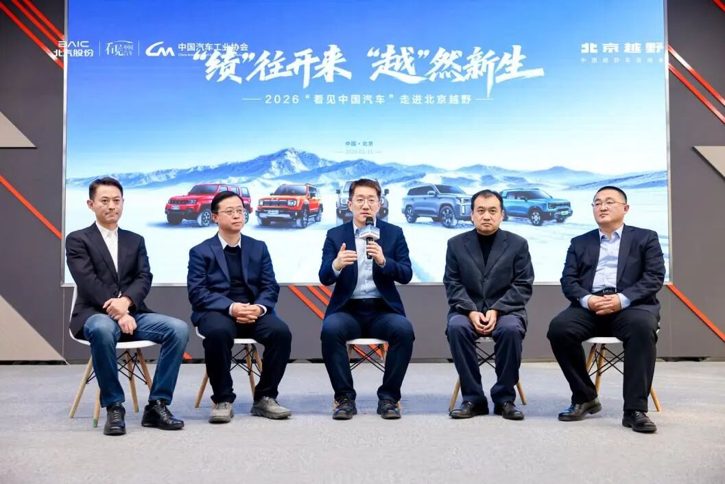 1月15日,2026“看见中国汽车”走进北京越野活动在京举办。中国汽车工业协会副秘书长柳燕、中国汽车流通协会乘用车市场信息联席分会(乘联会)秘书长崔东树,中国汽车工业协会改装分会秘书长刘亚龙,中国汽车流通协会专家委员会委员、央视财经评论员章弘与北京越野董事长王昊一起为方盒子2025年交付成绩揭幕,主流媒体代表和北京越野领导班子及工作人员在现场共同见证中国硬派越野品牌的新佳绩与硬实力。