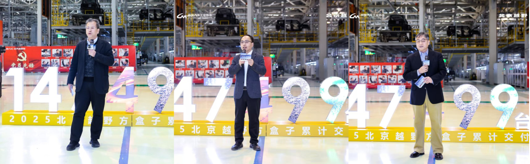 中国汽车流通协会乘用车市场信息联席分会(乘联会)秘书长崔东树,中国中国汽车工业协会改装分会秘书长刘亚龙,汽车流通协会专家委员会委员、央视财经评论员章弘三位专家对北京越野2025年的表现进行充分肯定,并对取得的新成绩表示祝贺。