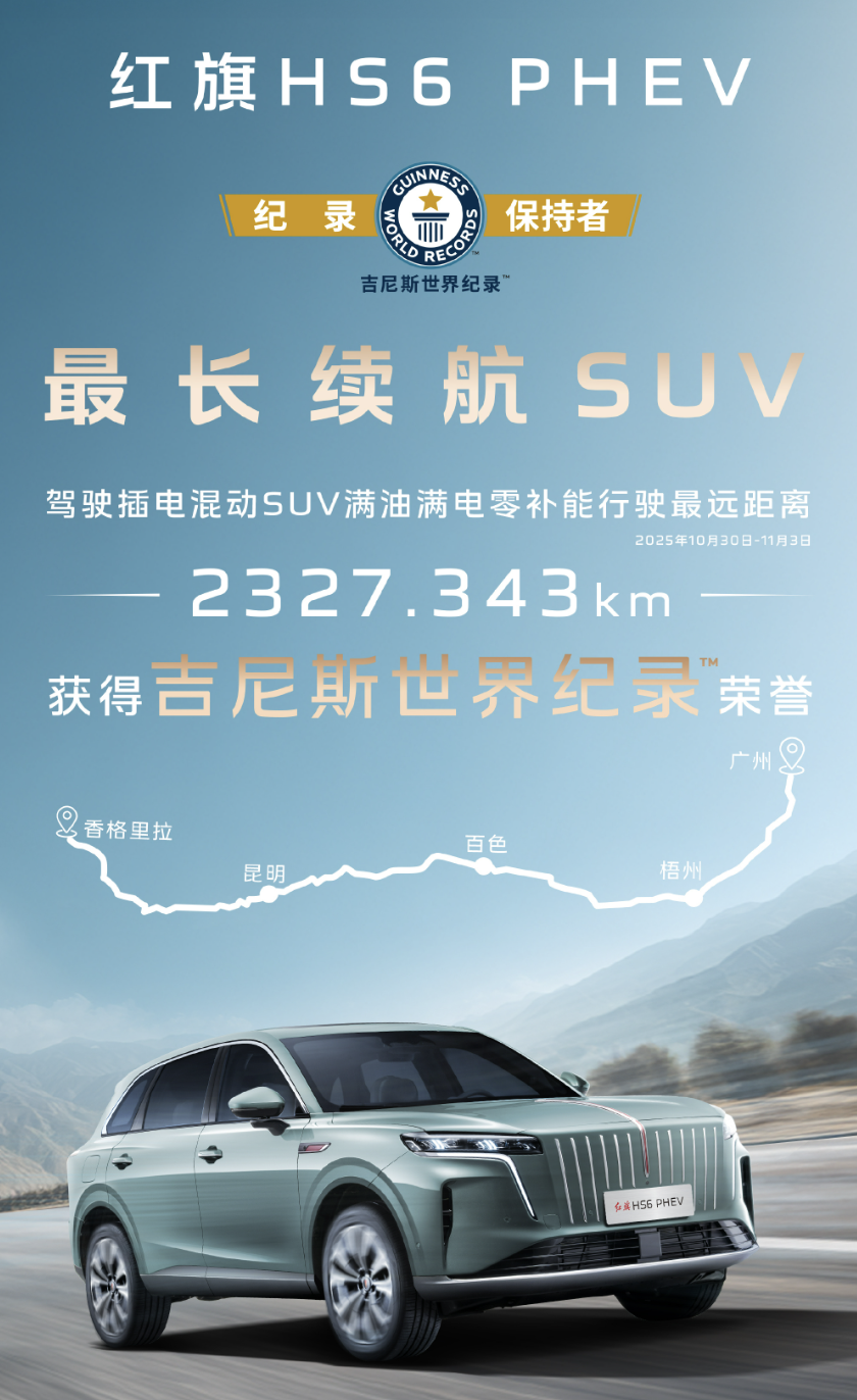 其中,HS6 PHEV车型以2327公里的超长续航创下吉尼斯世界纪录,成为红旗技术实力的鲜活注脚;红旗H5则以18.8万辆的年销量斩获中国品牌B级车销冠,平均每3分钟就有一辆新车交付用户。