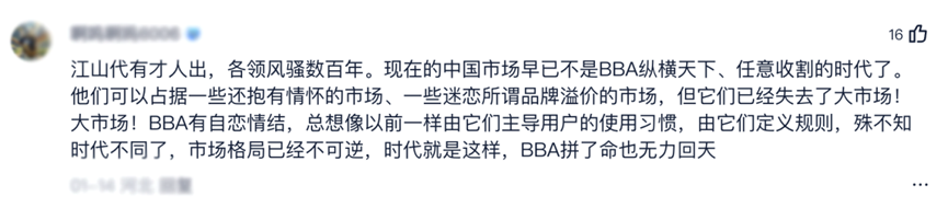 即使全新奥迪Q5L的价格降低,但与国内自主品牌的新能源SUV车型相比,全新奥迪Q5L的性价比并不高。一位网友的点评很精准:国内车市早已不是BBA的天下了。