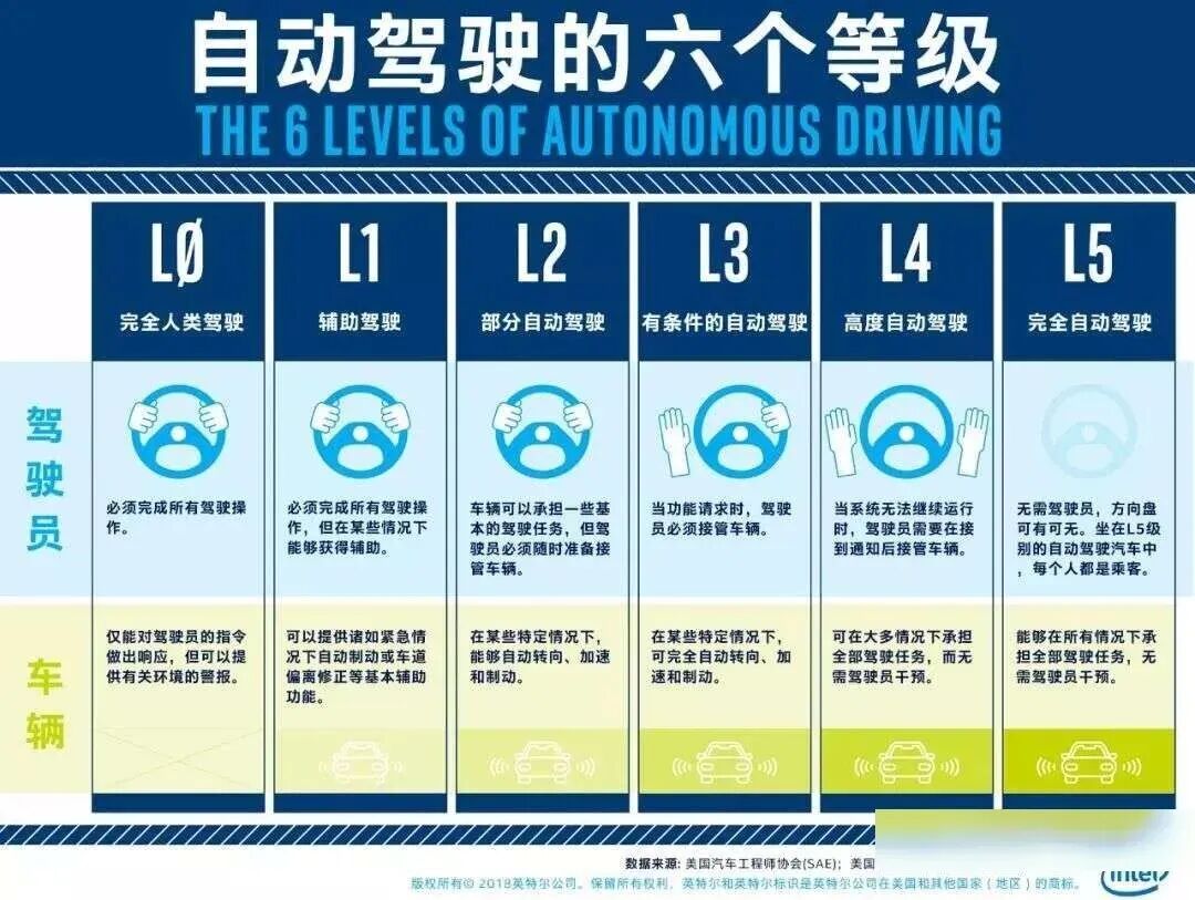 不少关注智能驾驶的朋友应该都知道,目前我国把自动驾驶分为了从L0到L5的6个等级。L0为应急辅助,车辆只会提供有关环境的警报,系统不会对车辆本身进行任何横向和纵向控制。例如很多老日系车,驾驶辅助上只有泊车雷达功能。