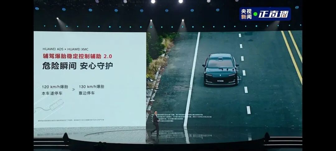 最后是强化了高速爆胎稳定控制能力。其实早在eAES1.0版本上,该功能已经取得了不错的成绩,在120km/h的时速下爆胎,车辆在依然能稳定的在本车道内停下。而在eAES2.0上,该功能升级为了在130km/h的时速下发生爆胎,车辆依然能稳定的靠边停车,在高速路场景下的安全性更足。