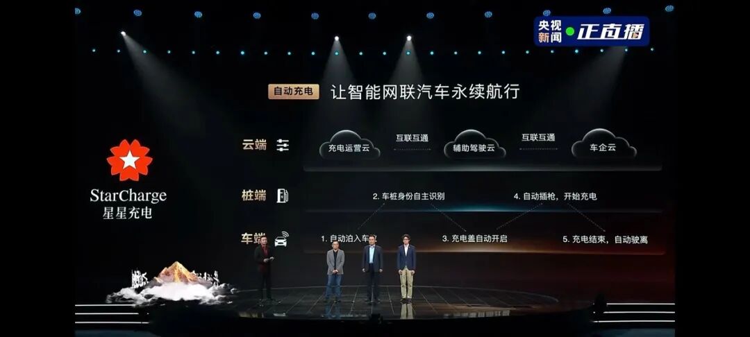 然后是L3+智慧充电,当车没电时,将会自动去寻找最近的充电桩,并且会和充电桩附近的机械臂联动,完成自动充电流程。充电完成后,车辆还会自动开回到原来的车位,实现“永续航行”。