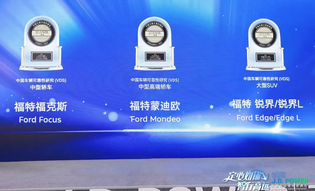 10月24日,J.D.Power 2025中国车辆可靠性研究(VDS)报告正式发布。长安福特入围主流品牌每百辆车问题数(PP100)总榜TOP3,福特锐界/锐界L荣膺大型SUV细分市场榜首(2022-2025年连续4年蝉联该细分市场榜首),福特蒙迪欧斩获中型高端轿车细分市场榜首(2023-2025年连续3年蝉联该细分市场榜首)。