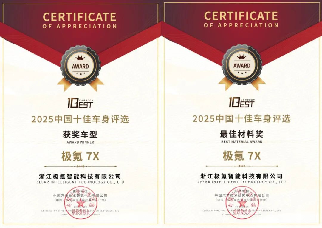 这些细节共同构成了焕新极氪7X的安全溢价逻辑:Euro NCAP与C-NCAP双五星认证、2025年中国十佳车身奖等荣誉,只是其安全实力的外在背书;而105km/h高速后碰不变形的乘员舱、75吨侧柱碰承载力、6秒保压的安全气囊等硬核数据,才是家庭用户可感知的安心保障。